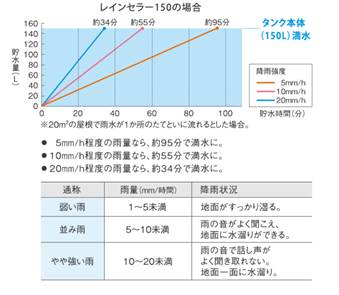 貯水量と貯水時間の目安は下図の通りです。